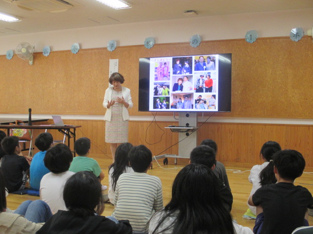 子供向けの講演の場合、特に「話や展開に メリハリをつけないと子供の集中力が持たない」というのは、ポンキッキのお姉さんをしていた時に、ディレクターさんたちから学んだ事のひとつです。そんな経験も生かしての45分の講演。