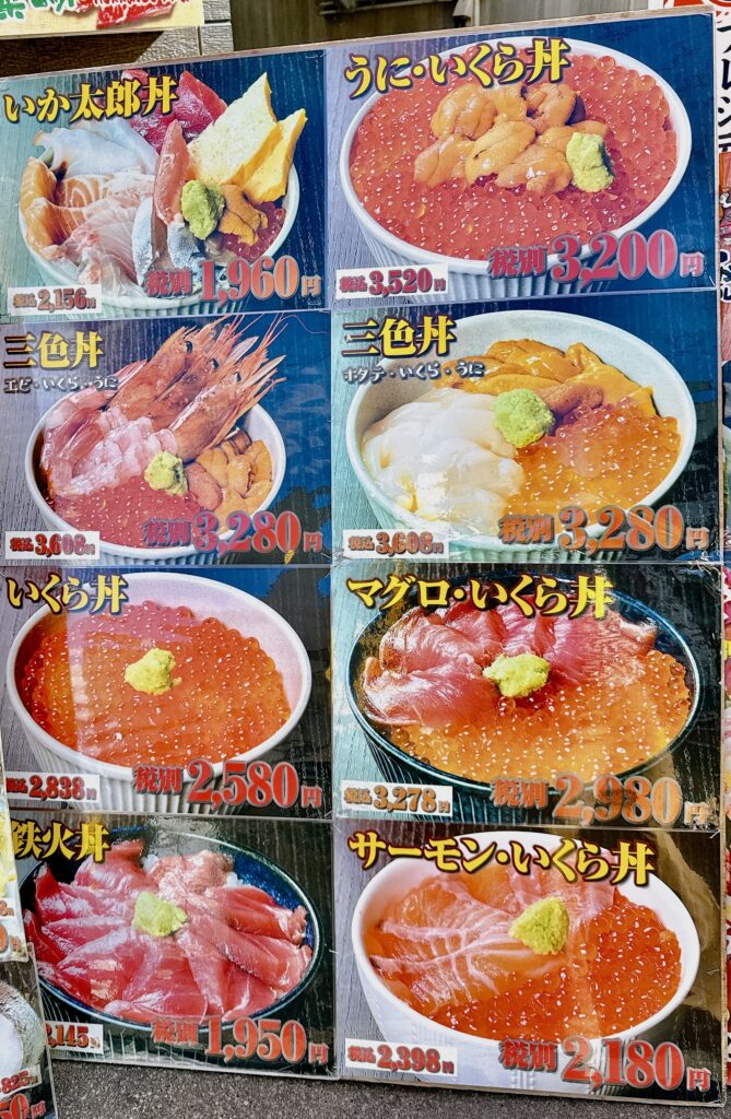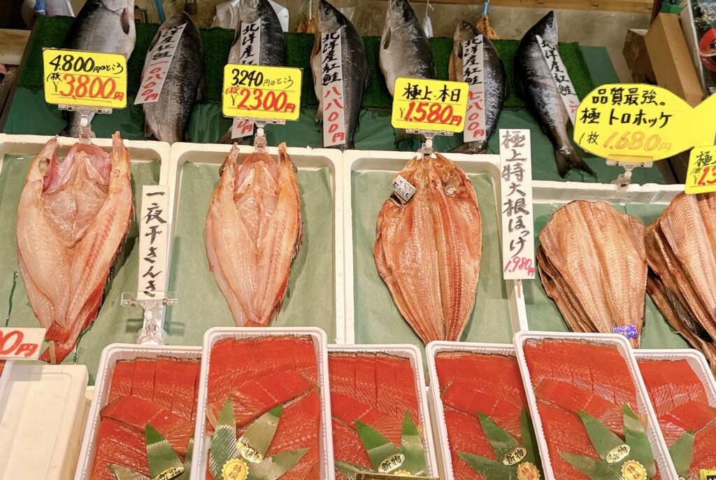 どのお店も圧巻の品ぞろえ。。しかも「雲丹いくら丼」などの丼物もい~っぱい。ホテルで朝食を食べてきた事を後悔してしまうほどでした(笑)