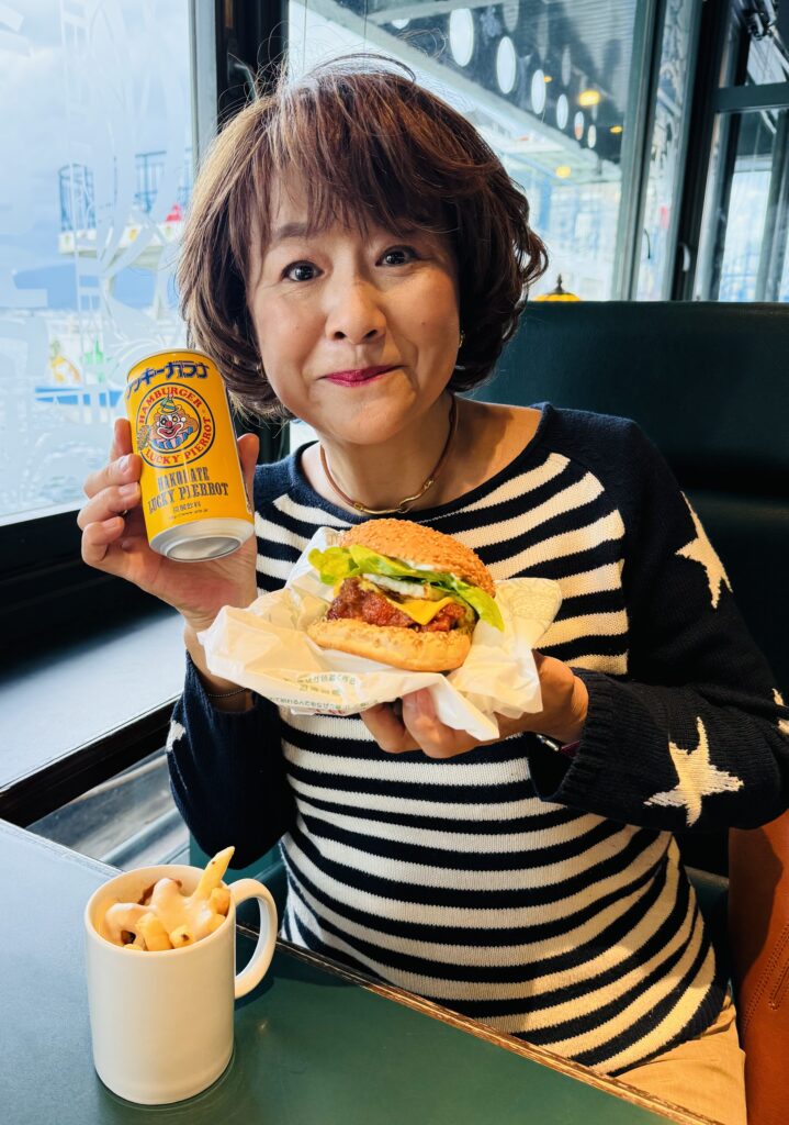 「ラッキーピエロ」は、ハンバーガーは想像以上に美味しくて、びっくり!飲み物は函館で定番の「ガラナ」をチョイス。コスパも味も最強で、大人気なのは納得です。