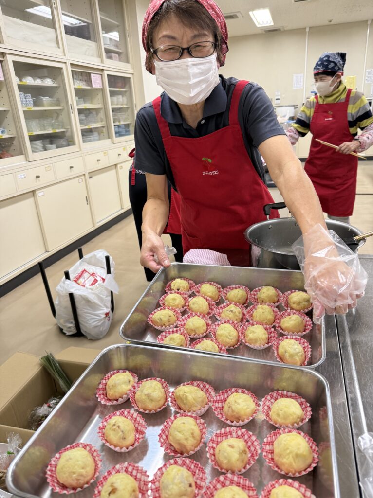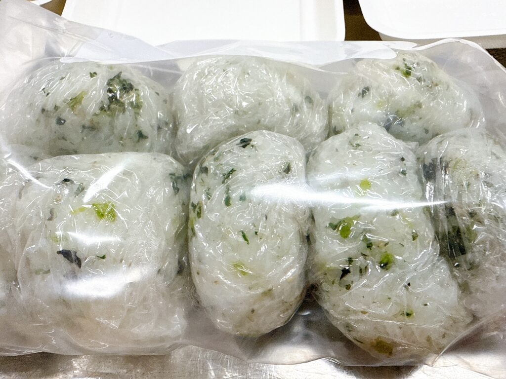 子どもたちは小学校低学年から中学生まで幅広いので、基本のご飯は1人150g。ただし、おかわりおにぎりも沢山用意してあります。ご飯を測るチームはいつも本当に手際よく測って盛り付けていきます。