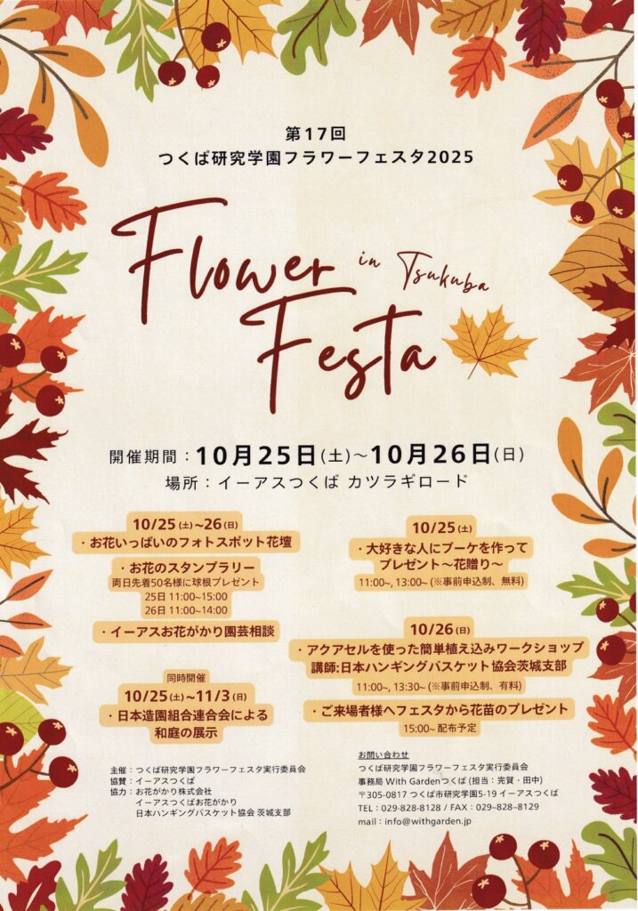 つくば研究学園フラワーフェスタ実行委員の皆様、ウィズガーデン様、イーアスつくば様、今回も素敵なイベントの司会を務めさせて頂き、ありがとうございました。今後ともどうぞ宜しくお願いします