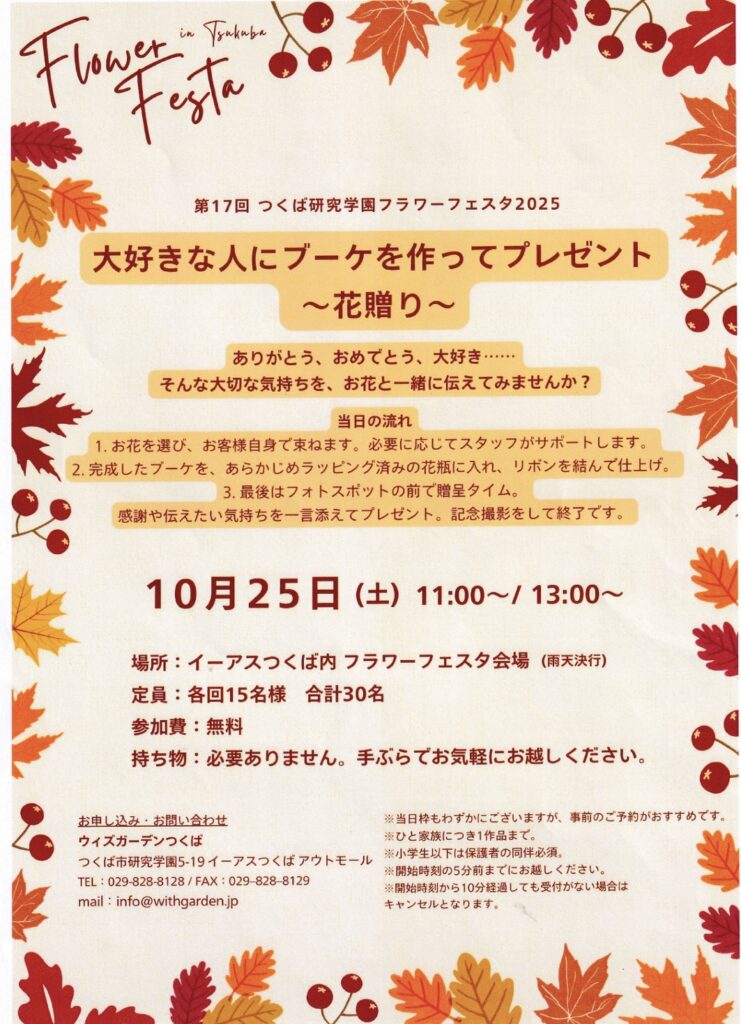 今年も2日間に渡り開催された「第17回つくば研究学園フラワーフェスタ 」の司会を務めさせて頂きました。このフェスタは、日常の中で気軽にお花を贈る楽しさを感じていただけけるような様々な企画をしています。