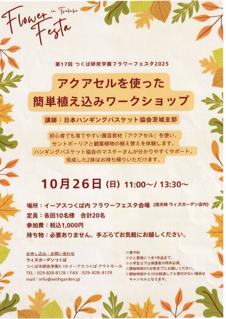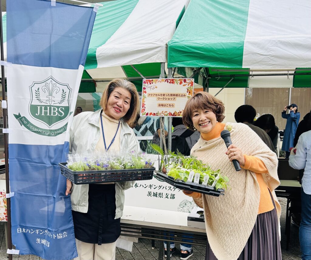 さて2日目は、「日本ハンギングバスケット協会茨城支部」のマスターさんによる「アクアセルを使った簡単植え込みワークショップ」でした。この企画も午前・午後とも満席。