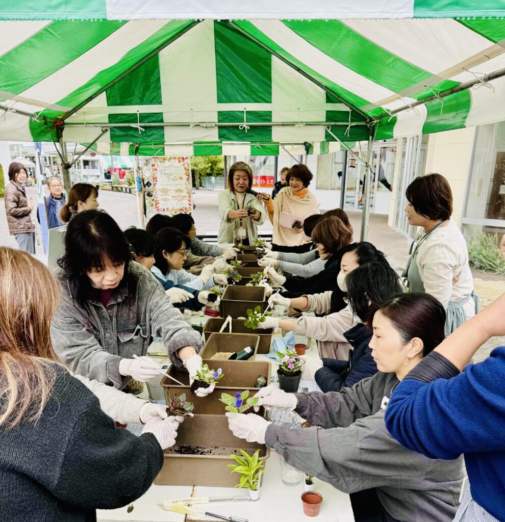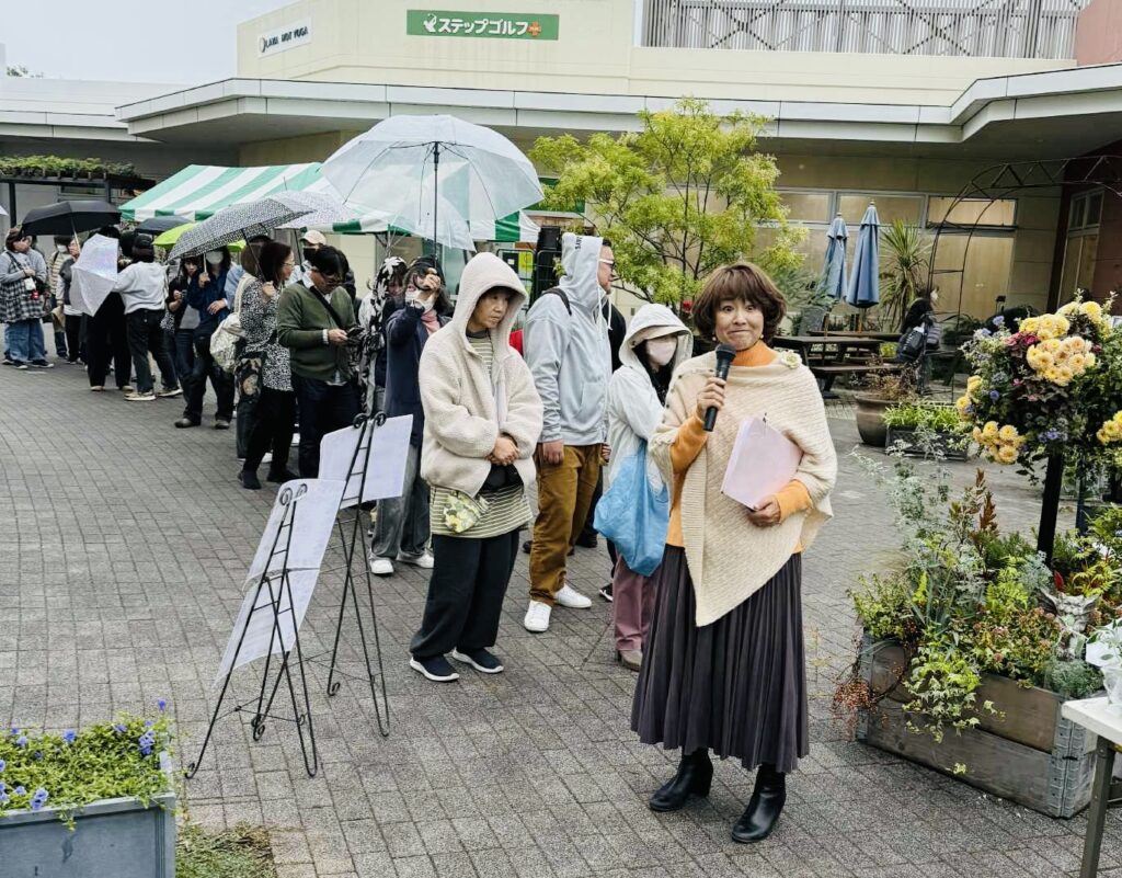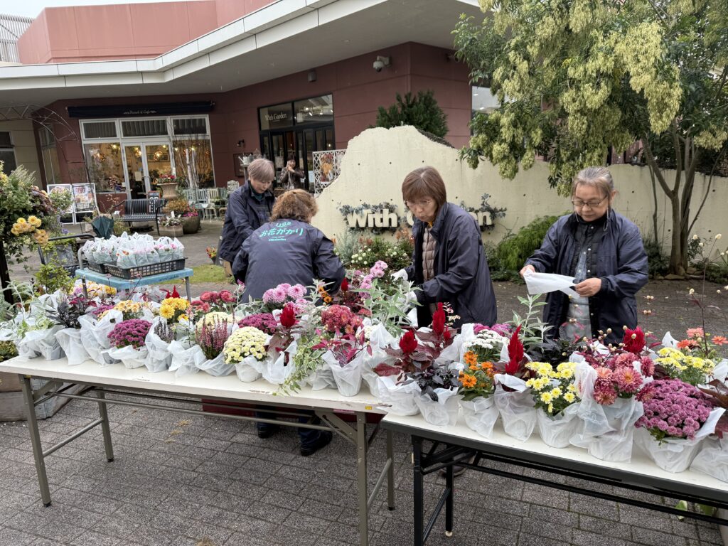 本日は、午後3時からこの会場に使用した、季節のお花で作成したフォトスポットを解体し、花苗をお客様にプレゼントしました。