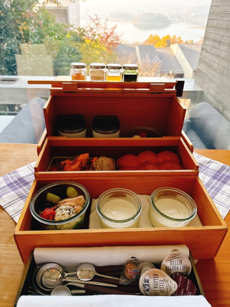 朝食はお部屋で頂きました。日頃は、朝も夜も音に囲まれているので、とても静かで、気持ちがざわつかない、こんなひと時は、ありがたいです。