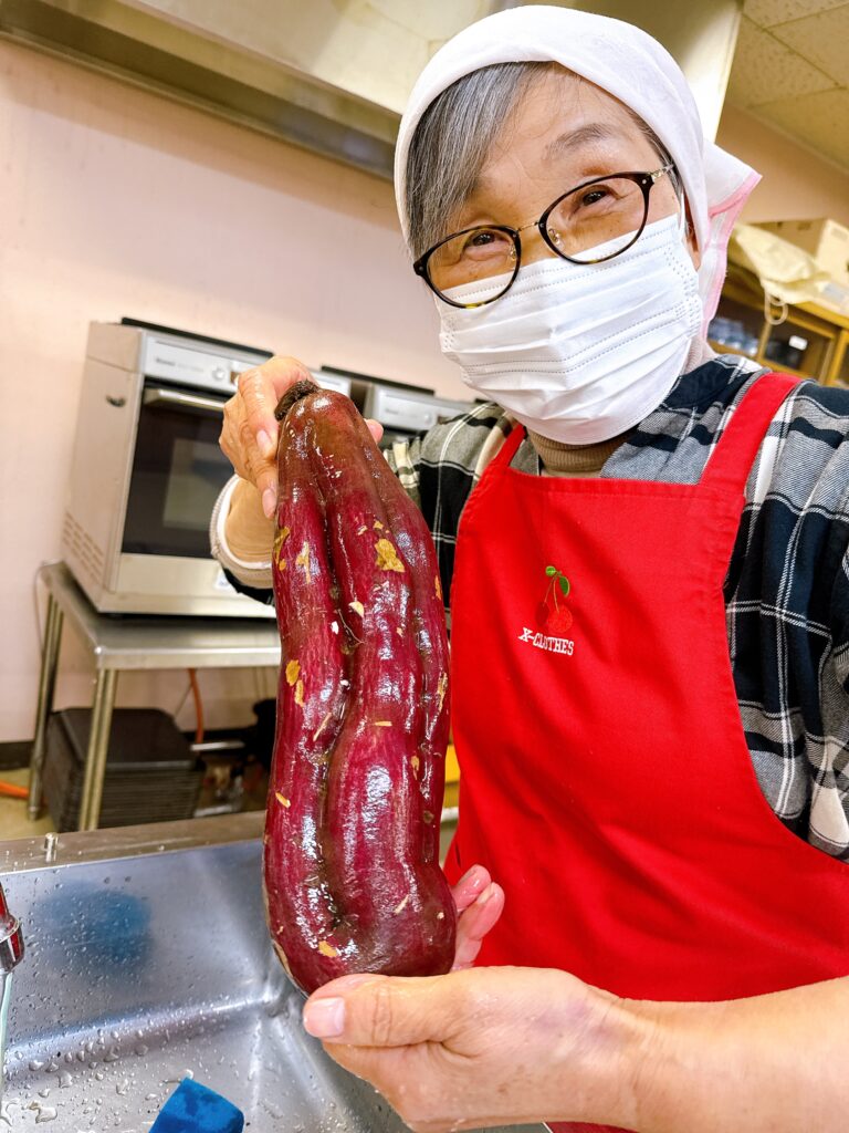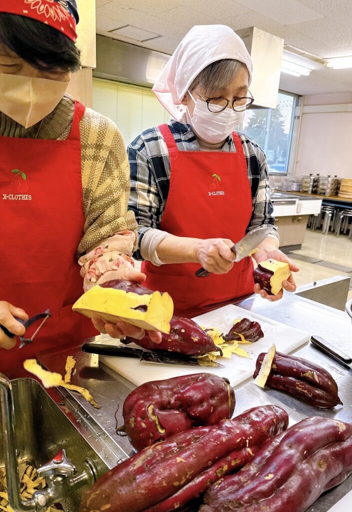 大きなサツマイモを使ったサラダチームも、皮むきとカットで忙しそう。
