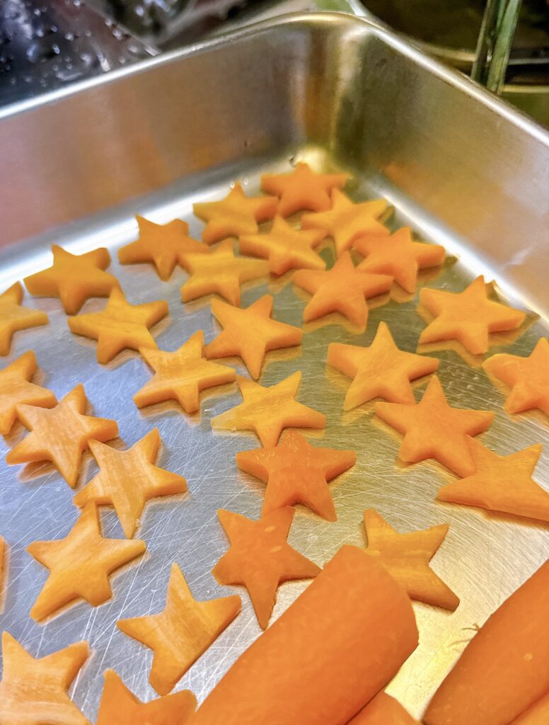 今回、私のミッションは「人参を星型に型抜きすること」。うさぎ林檎とか、人参のお星さまは、つい提案してしまうので、責任もって自分でやります(笑)