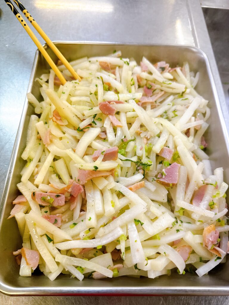 甘いさつまいものサラダも大根とハムの箸休めのお惣菜も、みんな美味しいと思います。