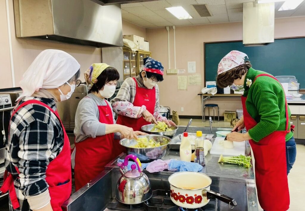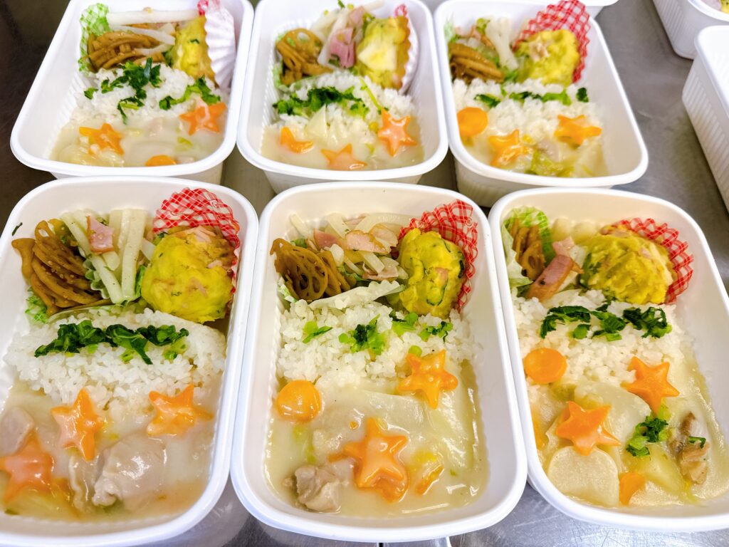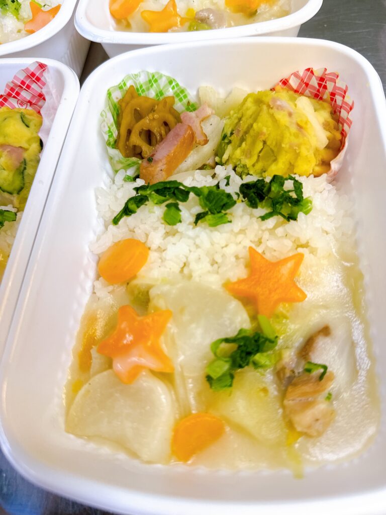 12月の子供食堂ボランティアは「鶏肉とカブ・白菜の温かいクリームシチュー」などを作りました