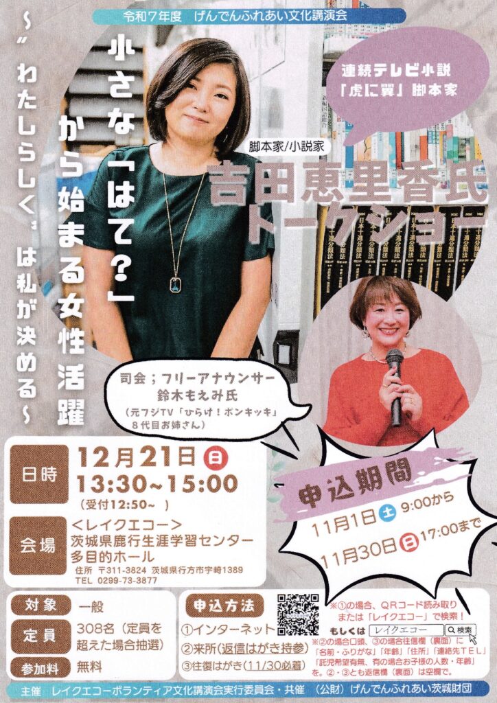 吉田恵里香さん・ご参加くださった皆様・茨城県鹿行生涯学習センターレイクエコーの皆様、スタッフの皆様、本日は素晴らしひと時をご一緒させて頂き、ありがとうございました。