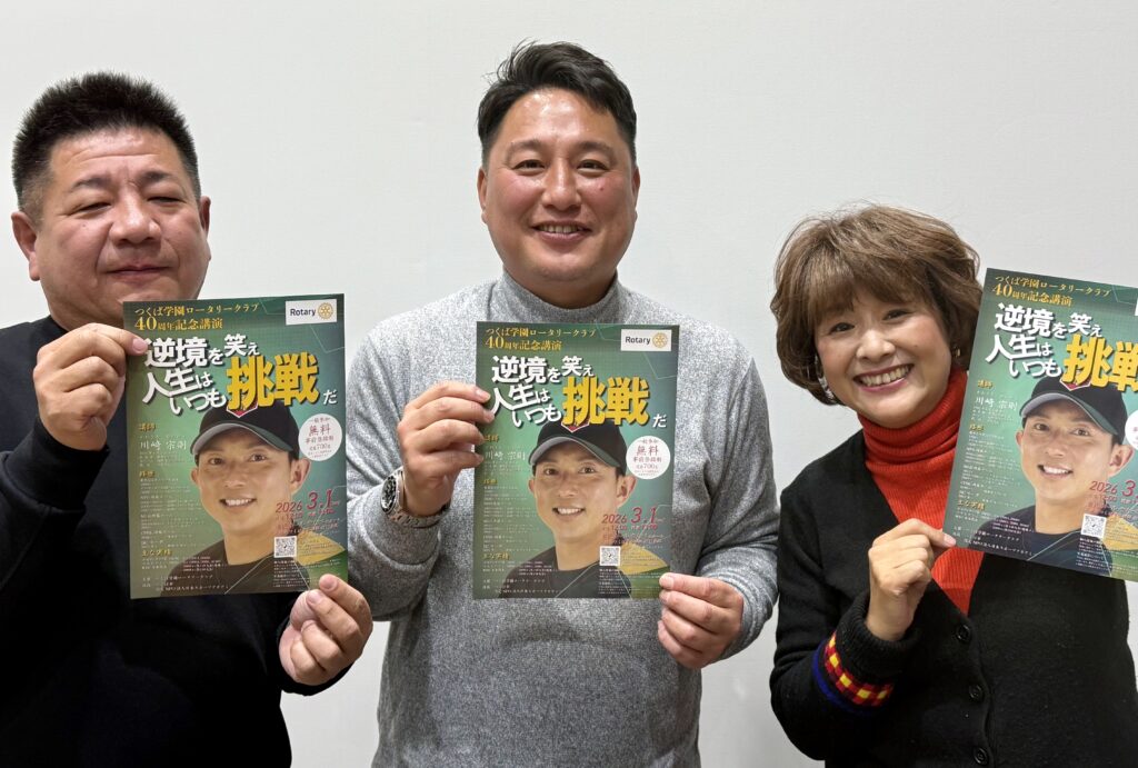 この無料講演会は「つくば学園ロータリークラブ40周年記念事業」の1つで、多くの皆様に楽しんで頂き、明るい気持ちになってもらえるように企画されたものです